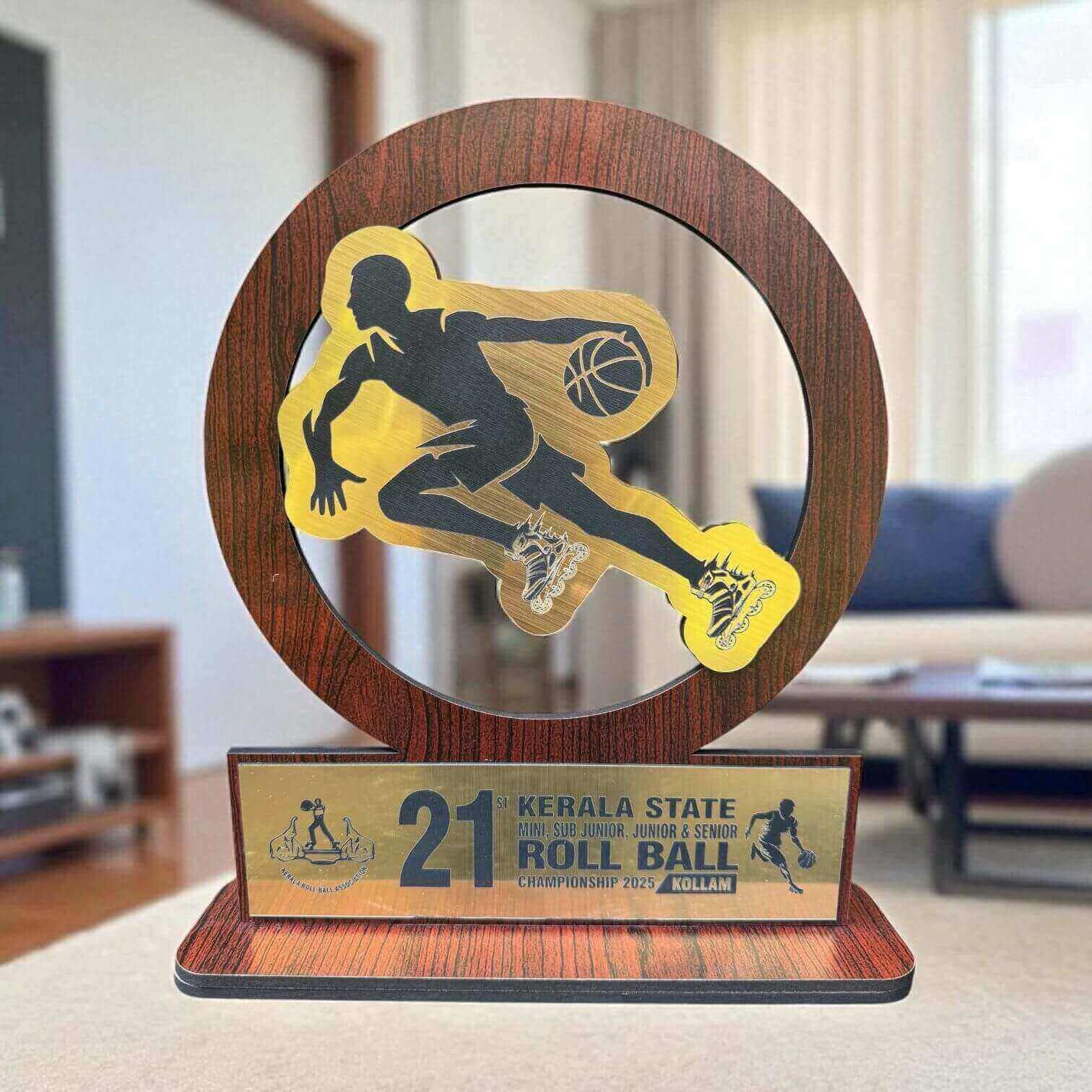 Celebrate the spirit of sportsmanship with our Roll Ball Championship Wooden Memento! This beautifully crafted piece features a stunning wooden finish and a striking golden player centerpiece. It’s the perfect custom sports trophy to honor athletes, winners, and participants in any sports event or tournament.